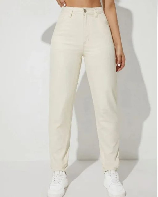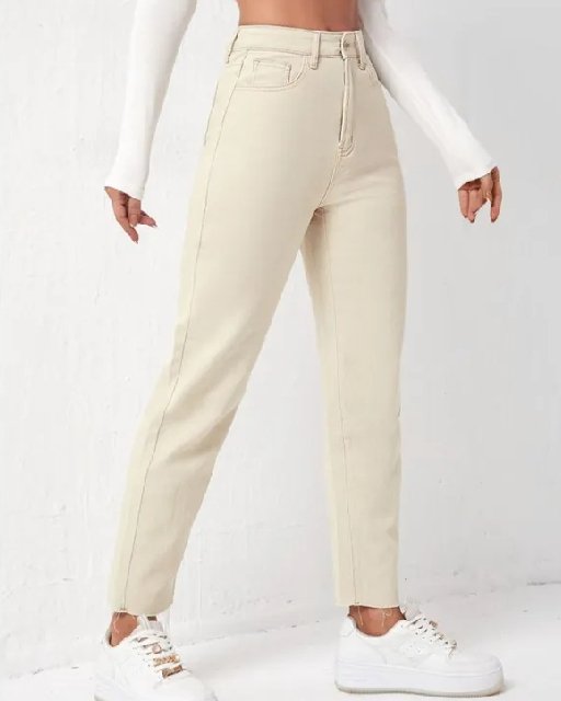 Cream Denim Mom Fit Jeans Elevate your casual wardrobe with our cream denim mom fit jeans. These stylish jeans feature a relaxed silhouette that flatters a variety of body types, offering both comfort and versatility